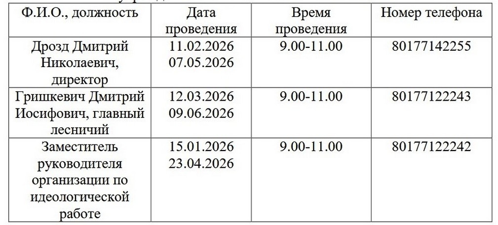 Проведения «Прямых телефонных линий», проводимых в 1 полугодии 2026 года руководством государственного опытного лесохозяйственного учреждения «Вилейский опытный лесхоз»