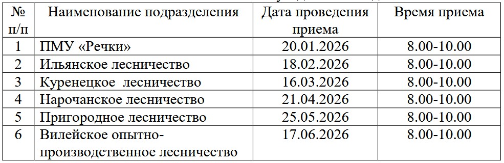 выездного приема граждан, в том числе индивидуальных предпринимателей, их представителей, представителей юридических лиц директором государственного опытного лесохозяйственного учреждения «Вилейский опытный лесхоз» во 1 полугодии 2026 года